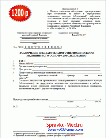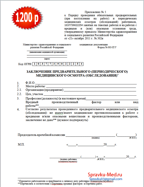 • При устройстве на работу, где опасные или вредные условия труда.Справка 302 н
