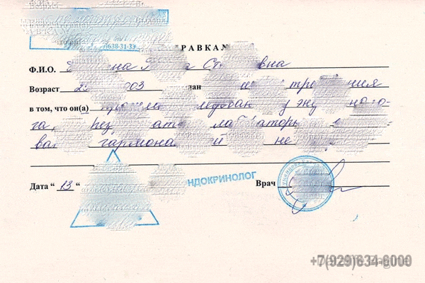 Купить справку от врача эндокринолога в Москве с доставкой на дом недорого